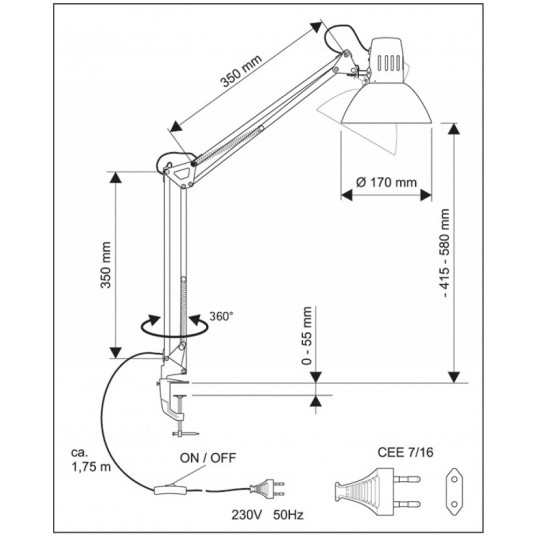 - Klasyczna lampka na biurko 60W z mocowaniem zaciskowym (5,5 cm)
