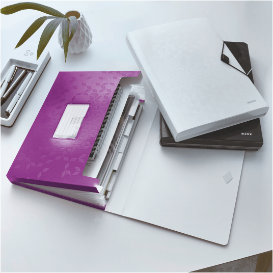 - Można ją łączyć z teczkami i zeszytami WOW oraz folderami Leitz CombiFile