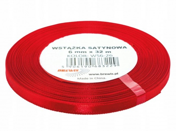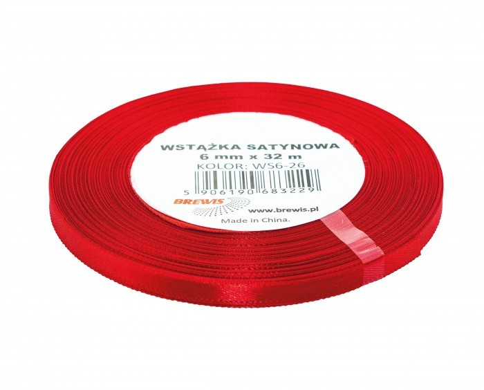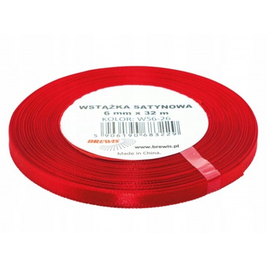 Wstążka satynowa Brewis 6 mm 32 mm czerwony