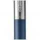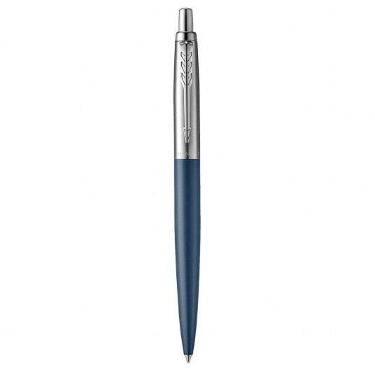 Mechanizm wysuwania wkładu przyciskowy. Długopis większy odstandardowego Jottera o ok 7 procent. Skuwka wykonana ze szczotkowanej stali.Korpus w kolorze niebieskim, matowym.