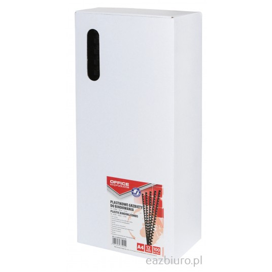 Grzbiety do bindowania Office Products, A4, 12mm (95 kartek), 100 sztuk, czarne