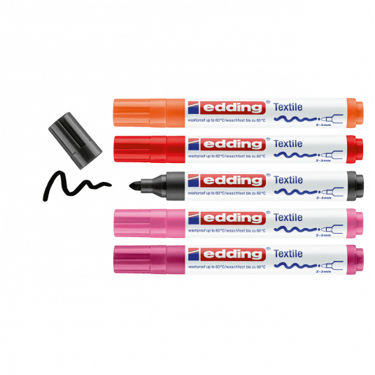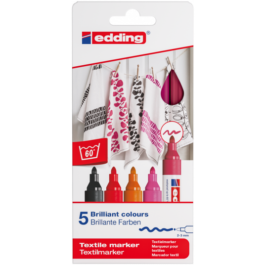Markery Edding do tkanin 5 kolorów ciepłych z okrągłą końcówką 2-3 mm