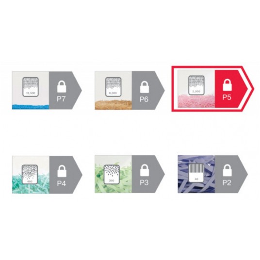 - najwyższy poziom bezpieczeństwa P5, tnie na ścinki 2 x 15 mm