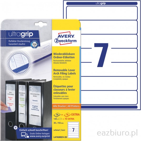 Usuwalne etykiety na segregatory Avery Zweckform; A4, 38 x 192mm, 20 arkuszy + 10 gratis