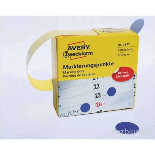 Kółka do zaznaczania w dyspenserze, trwałe, 250 szt. / rolka, o19 mm, niebieskie, Avery Zweckform