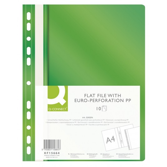 Skoroszyt Q-Connect, pp, A4, standard, 120/170mikr., wpinany, zielony