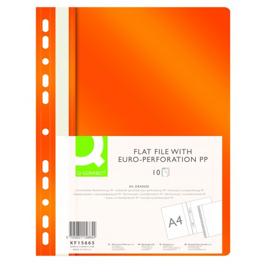 Skoroszyt Q-Connect, pp, A4, standard, 120/170mikr., wpinany, pomarańczowy