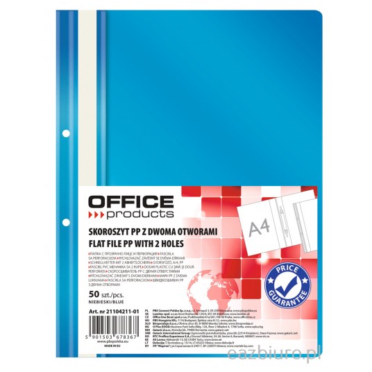 Skoroszyt Office Products, pp, A4, 2 otwory, 100/170mikr., wpinany, niebieski
