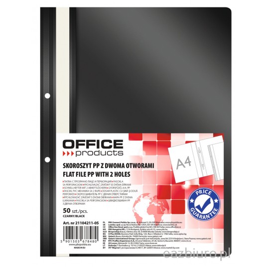 Skoroszyt Office Products, pp, A4, 2 otwory, 100/170mikr., wpinany, czarny