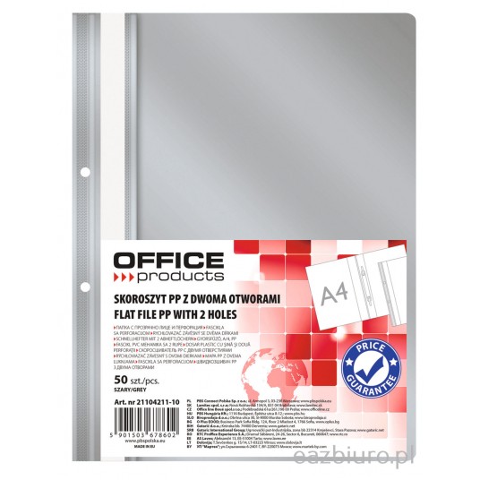 Skoroszyt Office Products, pp, A4, 2 otwory, 100/170mikr., wpinany, szary
