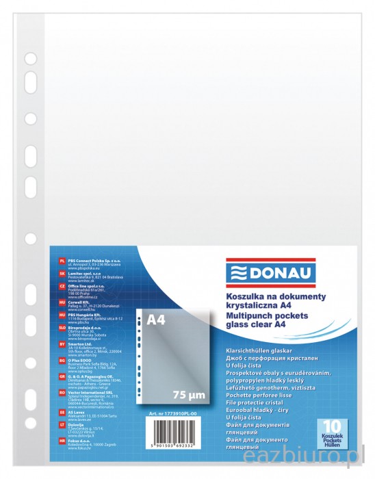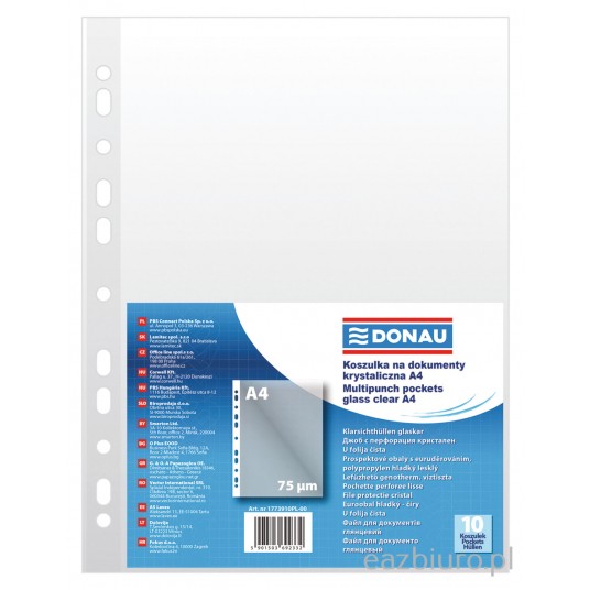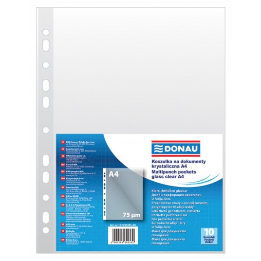 Koszulki na dokumenty Donau pp, A4 krystal, 75 mic, 10 sztuk