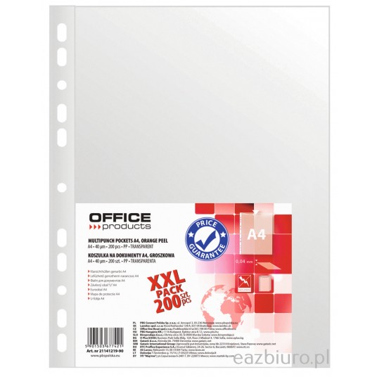 Koszulki na dokumenty Office Products, pp, A4, groszkowe, 40mikr., 200 sztuk