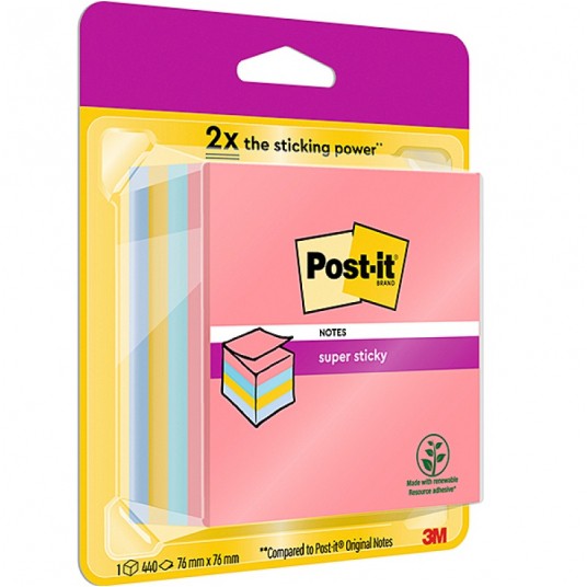Kostka samoprzylepna Post-it® super sticky (2028-ss-rbwc), 76x76mm, 1x440 kartek, mix kolorów