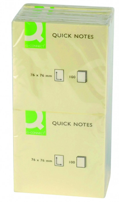 Bloczek samoprzylepny Q-Connect, 76x76mm, 1x100 kartek, jasnożółty