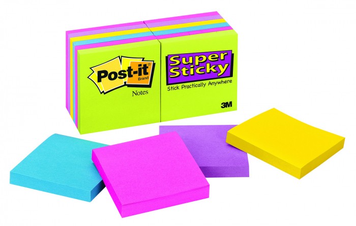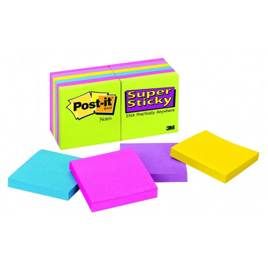 Bloczek samoprzylepny Post-it® super sticky (654 -12ssuc), 76x76mm, 1x90 kartek, neonowe