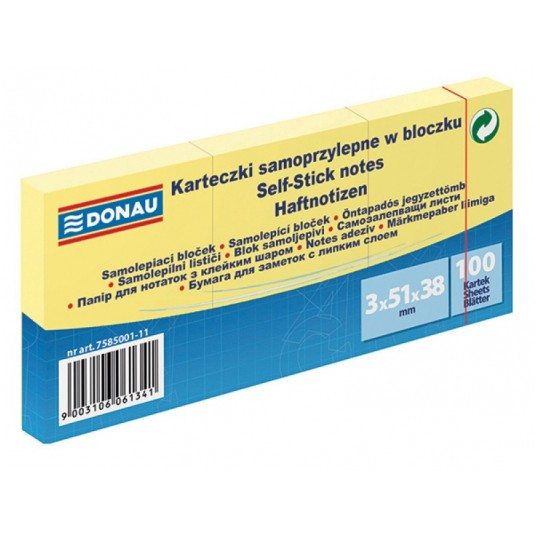 Bloczek samoprzylepny Donau, 38x51mm, 1x100 kartek, jasnożółty