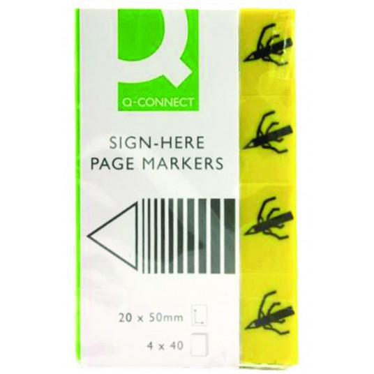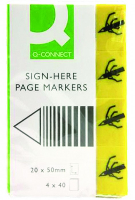 Zakładki indeksujące Q-Connect sign-here, papier, 20x45mm, 4x40 kartek, żółty