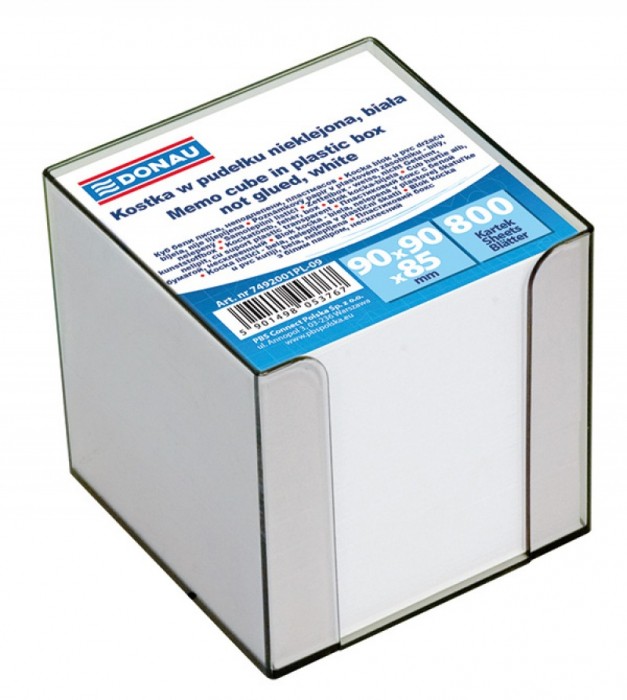 Kostka Donau nieklejona, w pudełku, 95x95x95mm, ok. 800 kartek, biała
