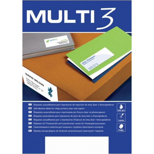 Etykiety uniwersalne Multi 3, 105x29mm, prostokątne, białe 100 arkuszy