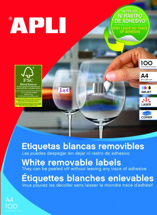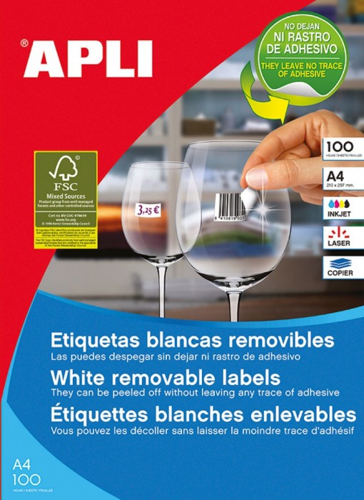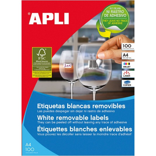 Etykiety usuwalne Apli 17,8x10mm, zaokrąglone, białe, 25 arkuszy