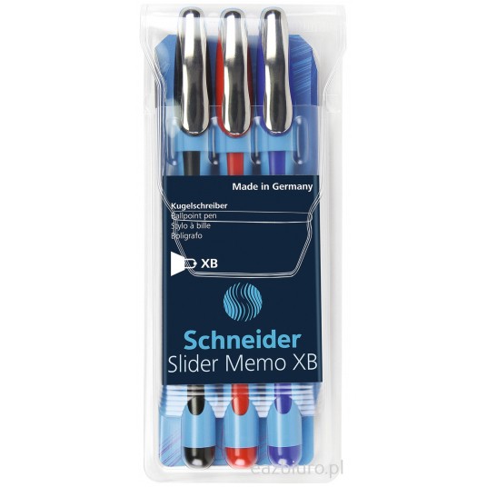 Zestaw długopisów Schneider slider memo, xb, 3 szt., miks kolorów