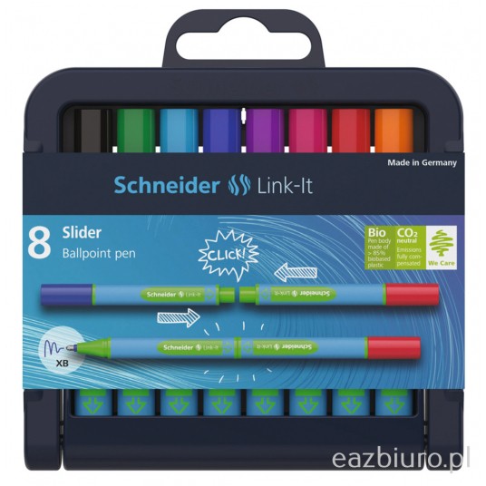 Długopis Schneider link-it slider, xb, stojak - podstawka, 8szt. mix kolorów
