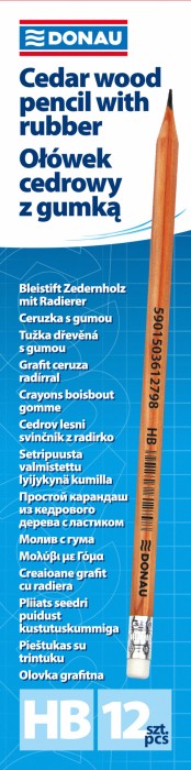 Ołówek drewniany z gumką Donau, hb, naturalny