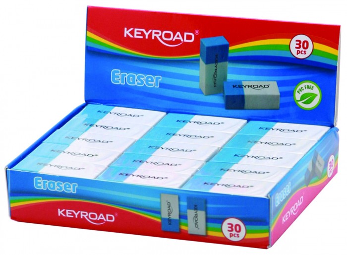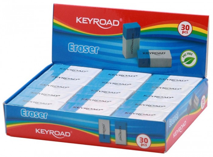 Gumka wielofunkcyjna Keyroad, pakowane na displayu, niebiesko-biała