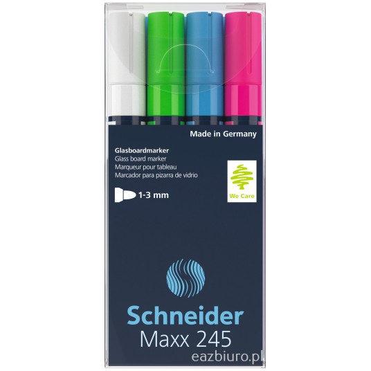 Marker do szklanych tablic Schneider maxx 245 b, 2-3mm, 4szt., mix kolorów