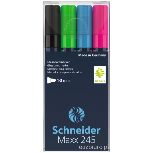 Marker do szklanych tablic Schneider maxx 245 c, 2-3mm, 4szt., mix kolorów