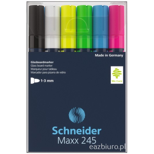 Marker do szklanych tablic Schneider maxx 245, 2-3mm, 6szt., mix kolorów