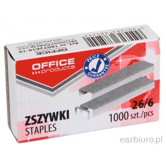 Zszywki Office Products, 26/6, 1000 sztuk
