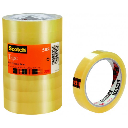 Taśma samoprzylepna ekonomiczna Scotch® (508), 19mm, 66m, 8szt., transparentny żółty
