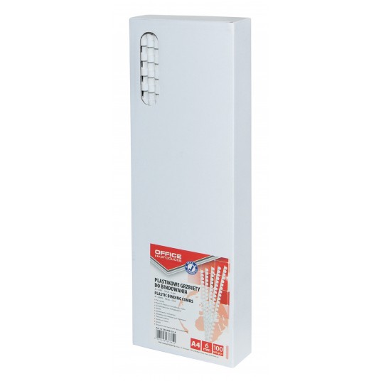 Grzbiety do bindowania Office Products, A4, 6mm (25 kartek), 100 sztuk, białe