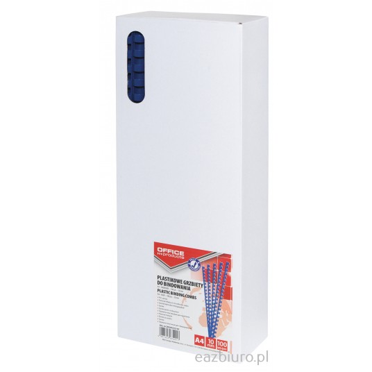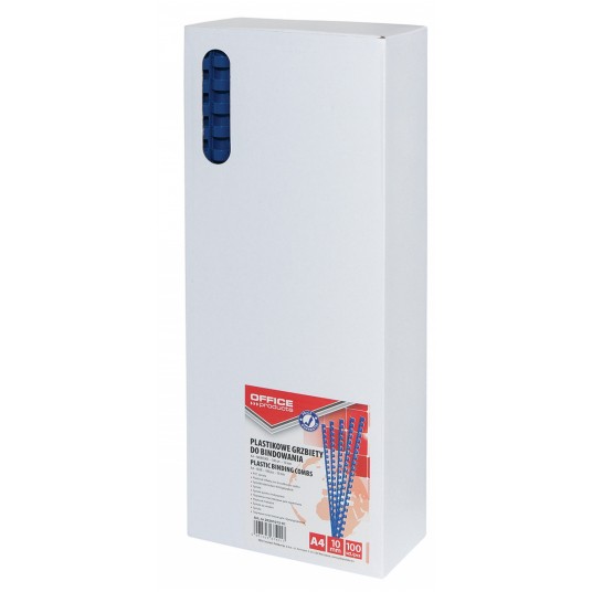 Grzbiety do bindowania Office Products, A4, 10mm (65 kartek), 100 sztuk, niebieskie