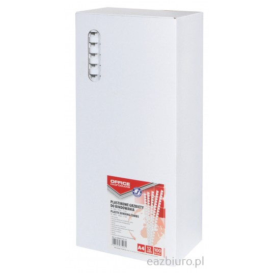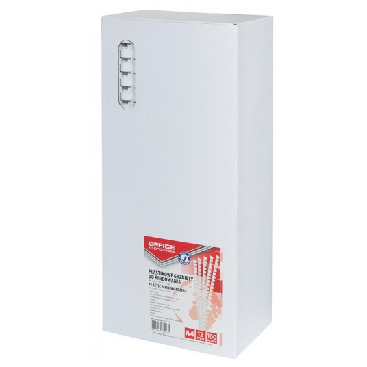Grzbiety do bindowania Office Products, A4, 12mm (95 kartek), 100 sztuk, białe