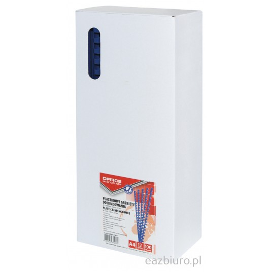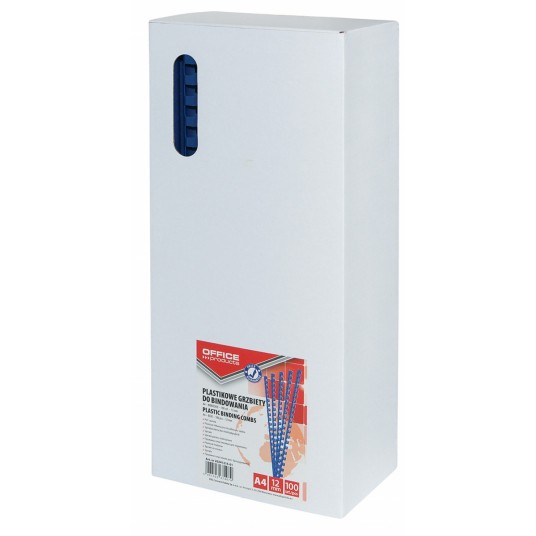 Grzbiety do bindowania Office Products, A4, 12mm (95 kartek), 100 sztuk, niebieskie