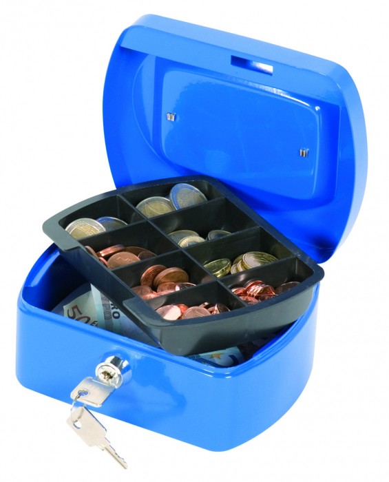 Kasetka na pieniądze Q-Connect, mała, 155x75x120mm, niebieska