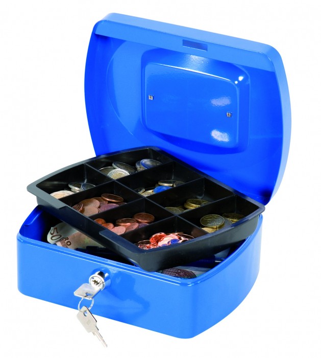 Kasetka na pieniądze Q-Connect, średnia, 205x85x160mm, niebieska