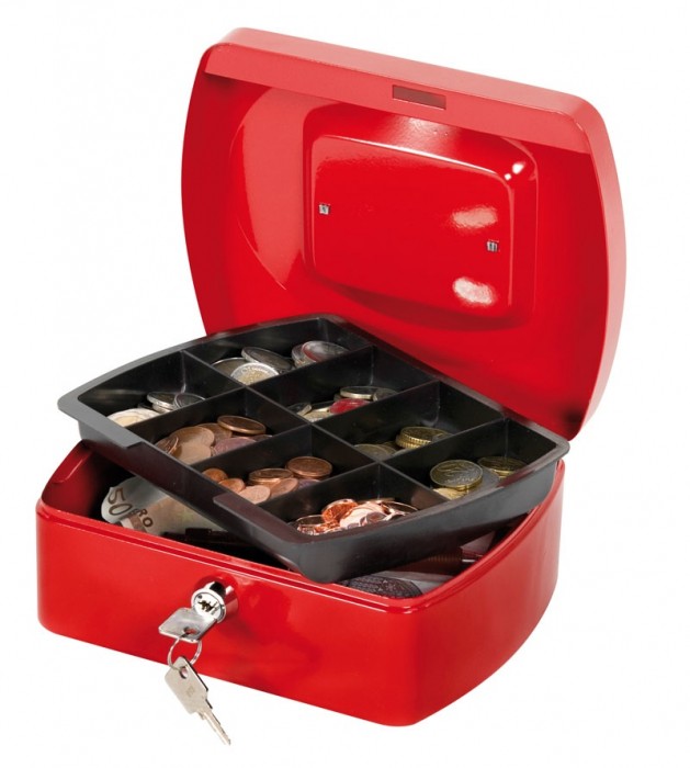 Kasetka na pieniądze Q-Connect, średnia, 205x85x160mm, czerwona