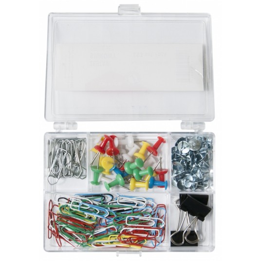 Zestaw biurowy (pinezki, klipy i spinacze) Office Products, mix 153 sztuki, mix kolorów