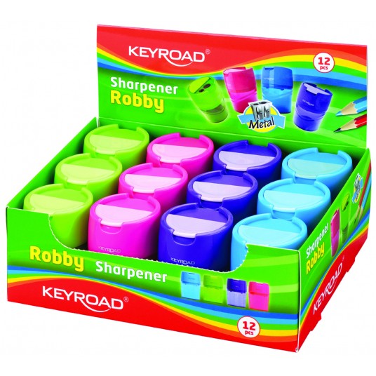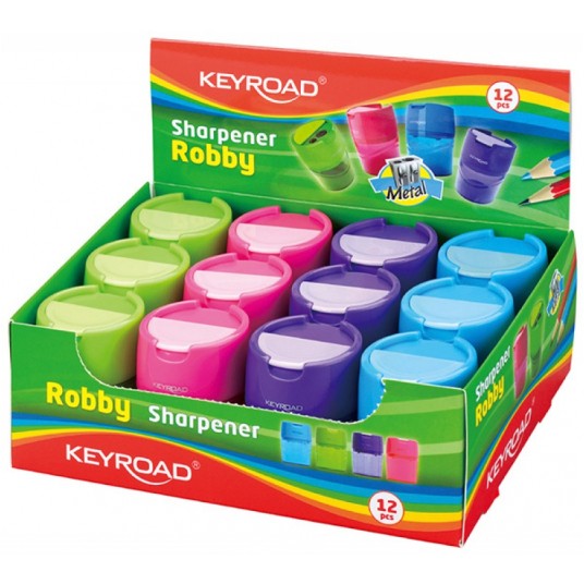 Temperówka Keyroad robby, aluminiowa, podwójna, z pojemnikiem, pakowane na displayu, mix kolorów