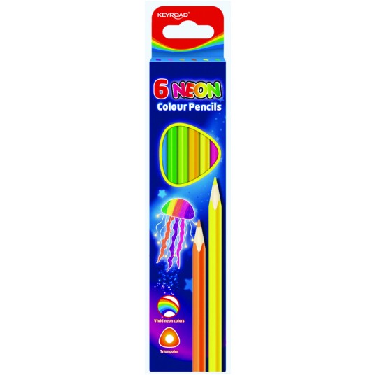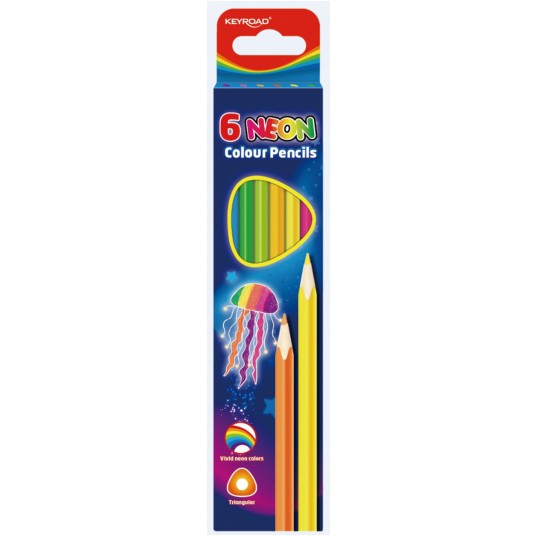 Kredki ołówkowe Keyroad, trójkątne, neonowe, 6 sztuk, mix kolorów