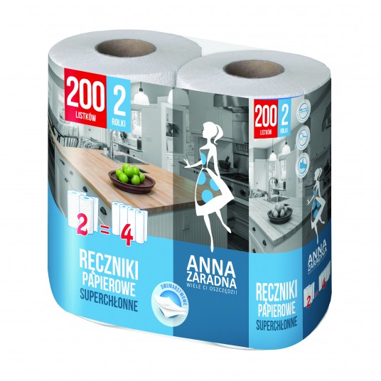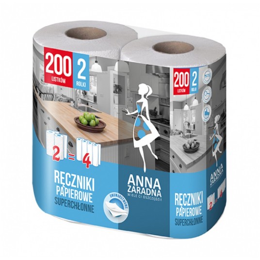 Ręczniki papierowe Anna Zaradna, 100 listków, 2 rolki, biały z niebieskim tłoczeniem