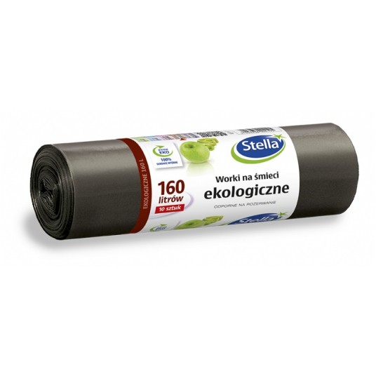 Worki na śmieci Stella, ekologiczne, 160 l, 10 szt., czarny
