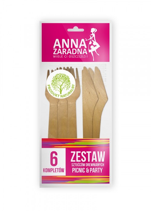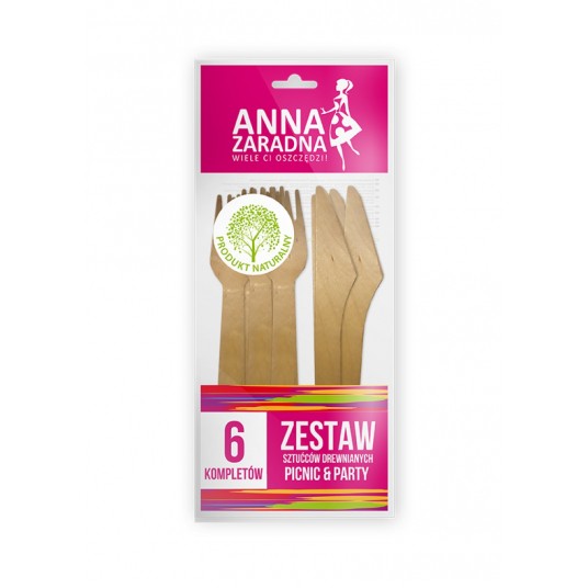 Zestaw sztućców drewnianych Anna Zaradna, 6 kompletów, drewno