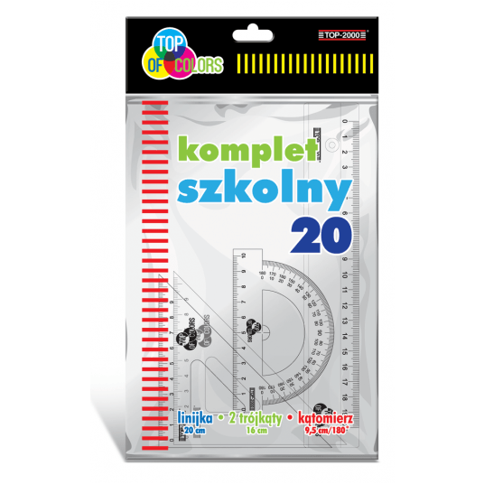Przybory matematyczne Top 2000 linijka 20 cm + 2 ekierki + kątomierz