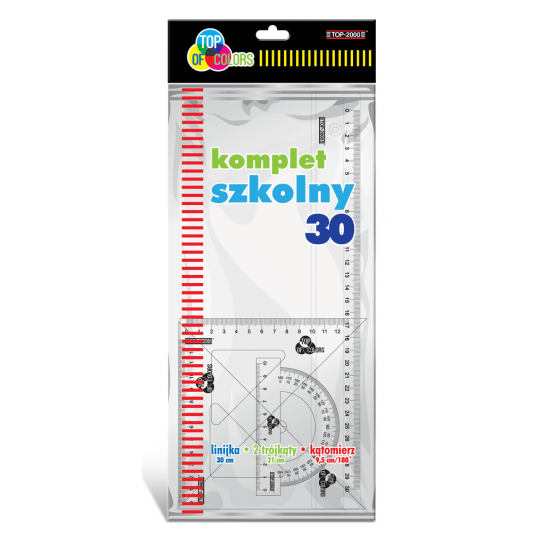 Przybory matematyczne Top 2000 linijka 30 cm + 2 ekierki + kątomierz