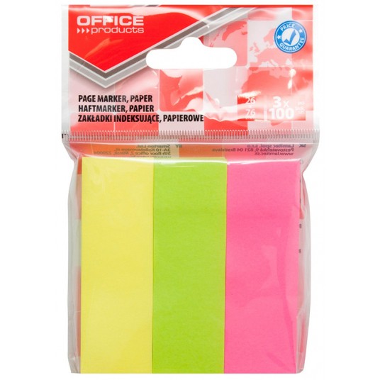 Zakładki indeksujące Office Products, papier, 26x76mm, 3x100 kart., zawieszka, mix kolorów