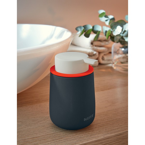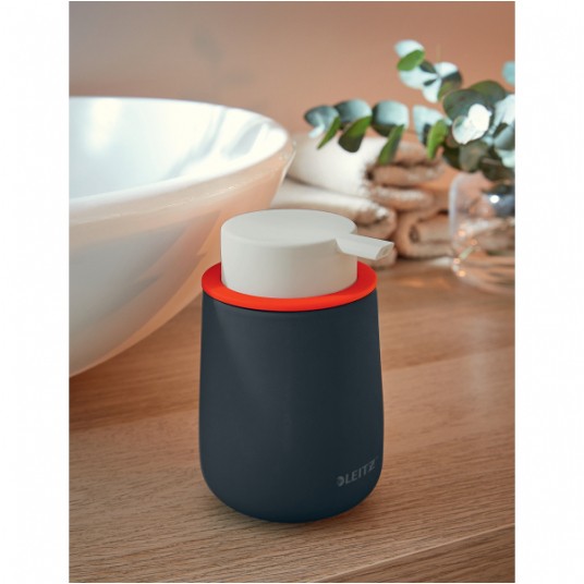 - Pojemnik z dozownikiem Leitz Cosy Dzięki kolekcji Cosy opracowanej przez Leitz poczujesz się jak w domu w każdym miejscu, do którego zaprowadzą Cię obowiązki zawodowe